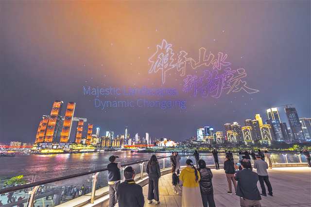 数据显示,“新韵重庆”无人机灯光秀已成为重庆夜游的顶流。自常态化展演以来,每月为南岸区带来新增逾10万人次的稳定客流。这场夜空中的视觉盛宴,正成为重庆一张崭新的名片。