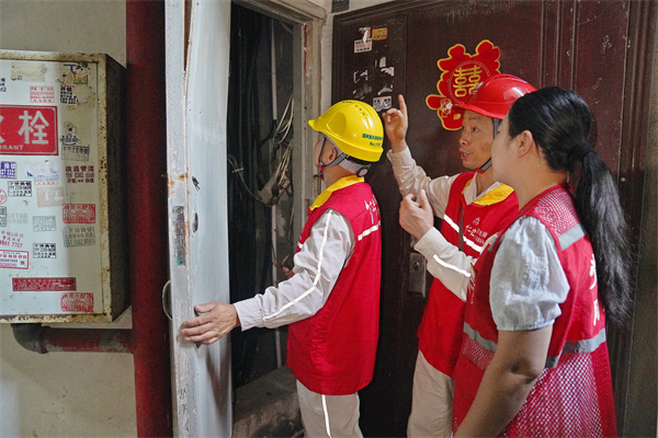 国网铜梁供电公司员工与南城街道社区网格员到尚风名居小区开展电井消防隐患专项排查。(颜玲莉 摄)