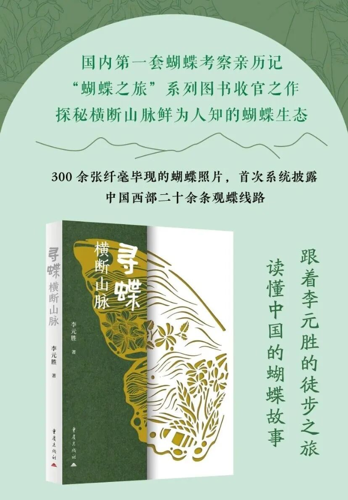 “金佛山和四面山是我开始自然考察的起点,有100次以上的进山记录,但当以蝴蝶为主题进行专项考察的时候,我发现它们都变得陌生,有很多惊艳的物种不断出现,就像我从来没有到过这两座山一样。”李元胜称,20多年间,为了观察蝴蝶,他一次次走进深山僻野,从贵州的十二背后,到重庆的四面山、金佛山、阴条岭,一路南下到南岭、武夷山,足迹几乎遍布整个中国南部山脉,积累数十万字蝴蝶生态观察笔记并写成纵横成趣的美文,最终编辑成书,填补了国内蝴蝶亲历考察类图书的空白。