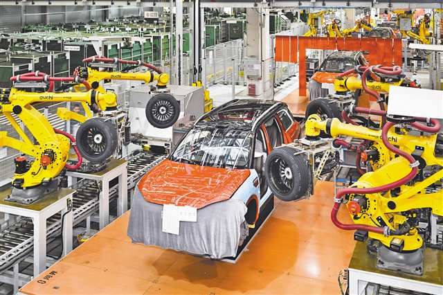 赛力斯汽车超级工厂,机器手臂正在安装轮胎。(本报资料图片)记者 张锦辉 摄/视觉重庆