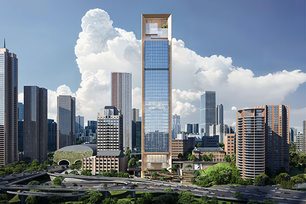 该项目位于渝中黄花园嘉陵江大桥旁核心节点,主体建筑面积约11.4万平方米,建筑高度220米,是一座集总部办公、商业配套于一体的综合性超高层建筑,创下全市超高层建设领域三项“首个”纪录——住建部绿色建筑新规范实施后首个新开工超高层三星绿色公共建筑、首个200米以上全钢结构超高层建筑、首个国际净碳超高层公共建筑。项目以“重庆之窗、渝中之门”为设计理念,聚焦现代生产性服务业集聚区建设,将加速集聚工业设计、工业软件、人工智能、新能源等产业链价值链高端业态,推动新兴产业与实体经济深度融合,为重庆建设“设计之都”“软件名城”,提升产业核心竞争力注入强劲动能。