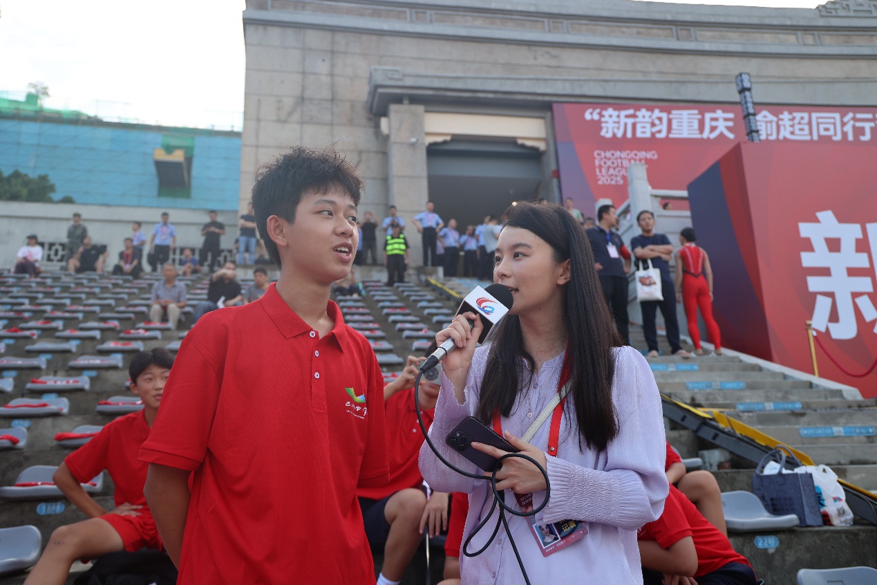 渝超揭幕战巴川学子现场观赛并接受媒体采访。