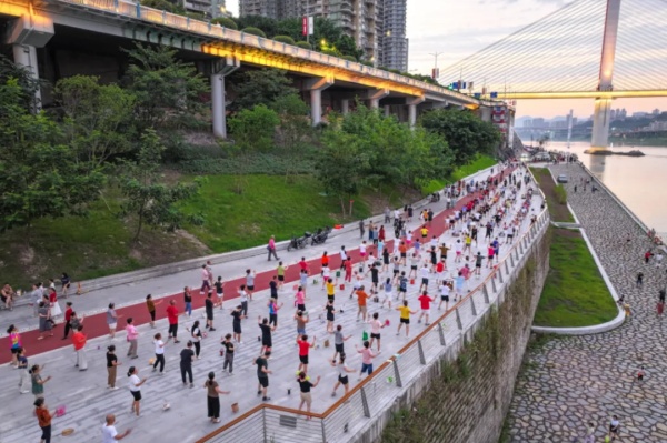 ——在沙坪坝,体育运动早已不是赛场上的遥望,它藏在双碑嘉陵足球场“渝超”助威的呐喊里,藏在盘活闲置用地建成社区公园的你来我往击球中,藏在重庆一中操场上少年追风奔跑的身影里,更藏在嘉陵江畔步道舞者伴霞翩跹的画面上......这里的每一个场景,都洋溢着这座城市每个角落的向上力量。