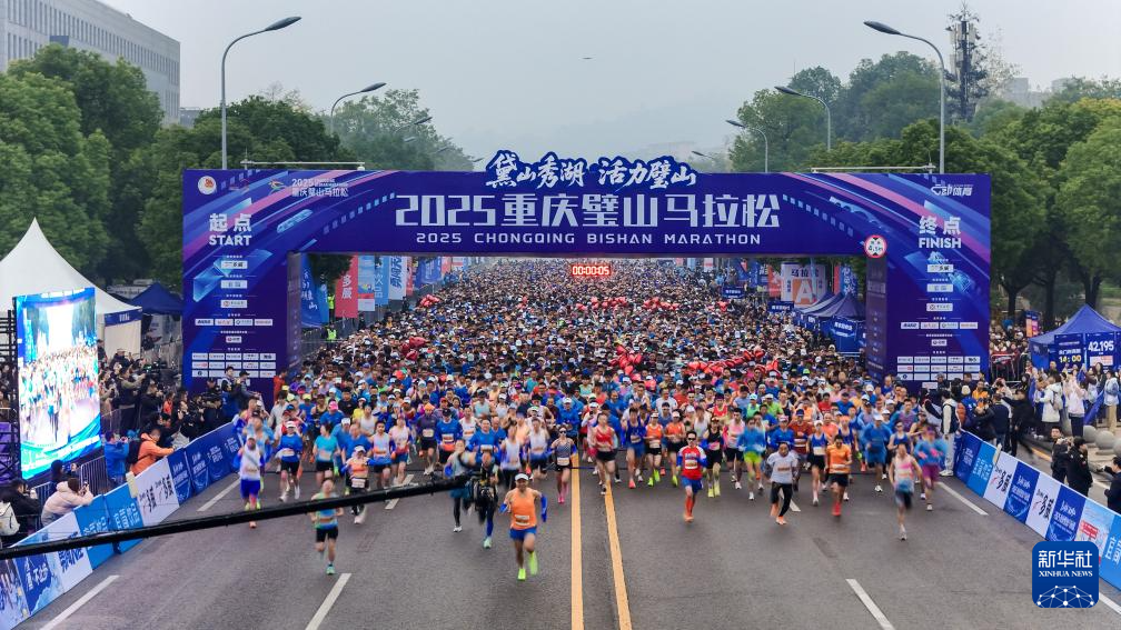 当日,2025重庆璧山马拉松在重庆市璧山区人民广场鸣枪开跑。