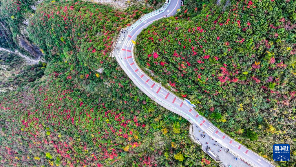 11月22日,游客在重庆巫山神女景区游览(无人机照片)。新华社记者王全超摄