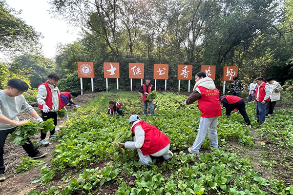 近日,重庆理工大学士继书香农场迎来一片丰收景象——香菜、上海青、菠菜、萝卜等蔬菜长势喜人,采收工作热火朝天。这片“周周有采收、季季有产出”的高效农田背后,凝聚着重庆理工大学学子将专业所学融入劳动实践的智慧结晶。