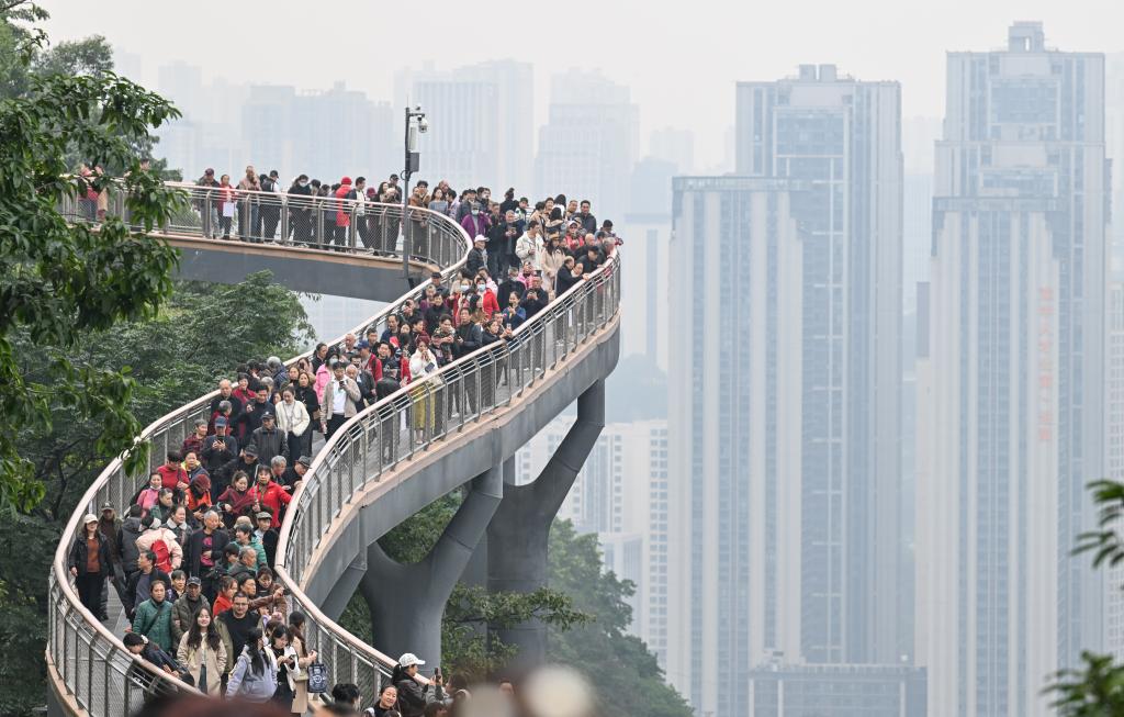 11月24日,人们在重庆半山崖线鹅岭栈桥观光。新华社记者 陈诚 摄