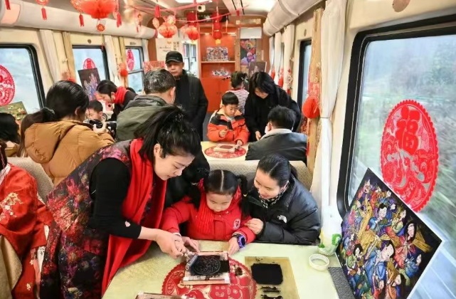 刘月(左一)指导小朋友制作綦江农民版画。