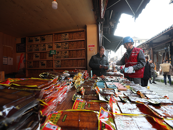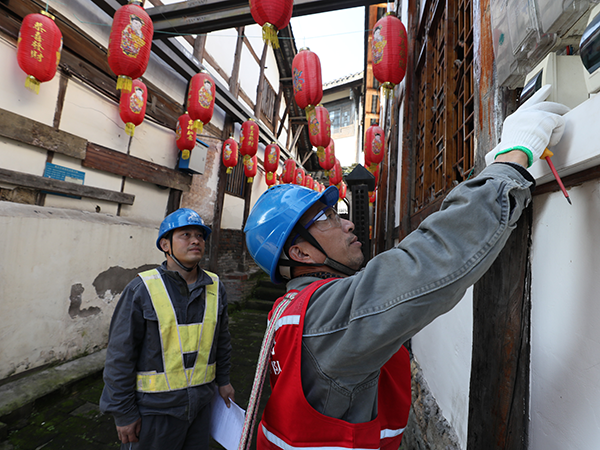 国网重庆市南供电公司员工深入古镇开展用电安全检查。