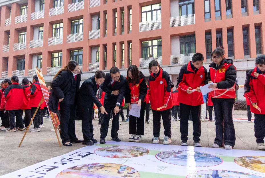 12月2日下午,重庆市巴南区龙洲湾初级中学校园内,由重庆市高级人民法院、重庆市第五中级人民法院、重庆市巴南区人民法院、重庆市巴南区教育委员会、共青团重庆市巴南区委员会、重庆财经学院与龙洲湾中学联合举办的“宪法护航・青春同行”宪法进校园主题活动在此举行。重庆三级法院联合多部门举行此次宪法进校园主题活动,旨在切实践行《中华人民共和国法治宣传教育法》,大力弘扬宪法精神,让宪法精神浸润青少年成长之路。