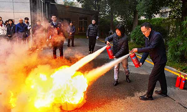 疏散完成后,该公司邀请重庆市利民防火中心韩教官为员工授课,结合近年来全国各地火灾事故案例,详细讲解了火灾的危害性、预防措施、扑救方法以及疏散和逃生要点,并在户外空地演示了灭火器的使用方法。