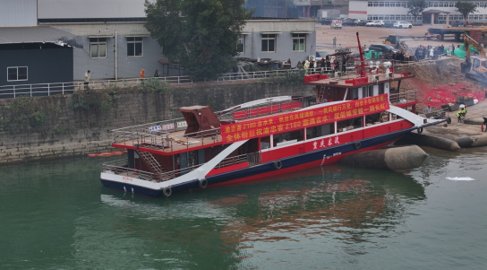 新“渝忠客2180”轮渡船总长38.5米,型宽6.4米,型深1.8米,吃水1米,载客量150人,投资252万元,由重庆金龙船业承建。该船于2025年7月动工建造,吉水后将停靠舾装泊位进行主机安装和设备调试,计划于2026年1月交付使用。