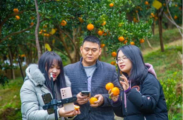 电商助力,畅通销路。“农掌柜”团队的电商青年搭建线上平台,推动黔江羊肚菌、高山冷水米等特色农产品走进北上广、销往大湾区;阿蓬江镇高碛社区的果农陆小华,通过短视频记录柑橘种植过程,让更多人认识并喜爱种植的椪柑;抖音达人“友哥、咪妹”走进猕猴桃基地直播,4小时带动销售超300单;中信集团选派互助村的青年书记,则为当地“春见”耙耙柑设计新包装、拓展电商渠道,助力品牌焕新升级。