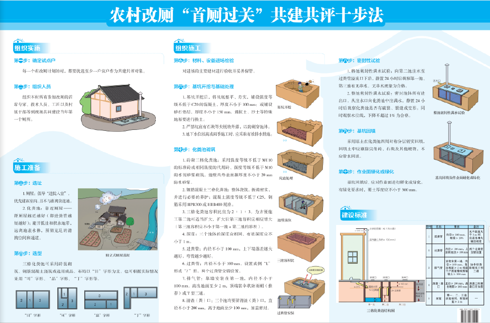 本书包含管理人员操作指南、技术指导人员操作要点、施工人员操作手册三大章节,并附有“首厕过关”共建共评十步法挂图,图文并茂、通俗易懂。相关人员表示,期望本书的出版,能切实提升农村改厕质量,实现“首厕过关”带动“每厕过关”的目标。