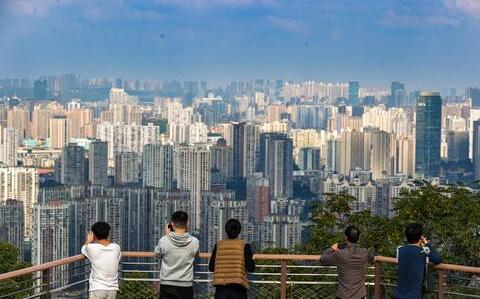 11月4日,沙坪坝区平顶山公园半山崖线,市民们正在观景台观看城市风光。记者 尹诗语 摄