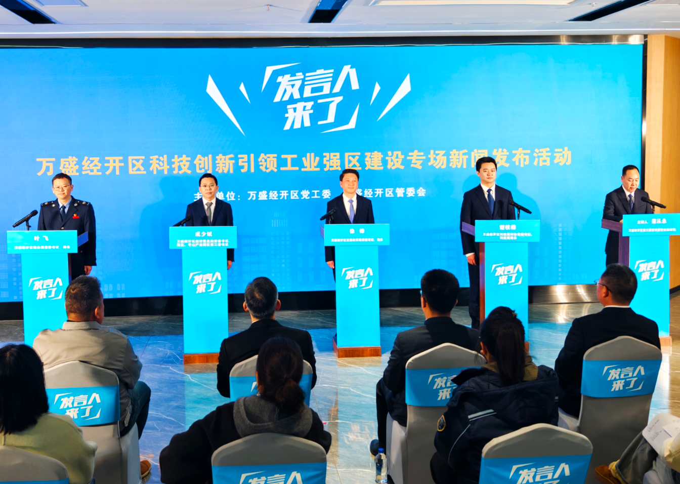 12月12日,万盛经开区“发言人来了——科技创新引领工业强区建设”发布活动举行。万盛经开区发展改革局、科技局、经济信息局、税务局等部门负责人以及企业、媒体代表齐聚一堂,围绕招商引资和为企业纾困解难、护航企业人才培养、科技创新、技术研发、制造向“智造”转型、投产达产、减税降费等惠企政策核心议题,进行全面解读发展成效、精准回应社会关切。