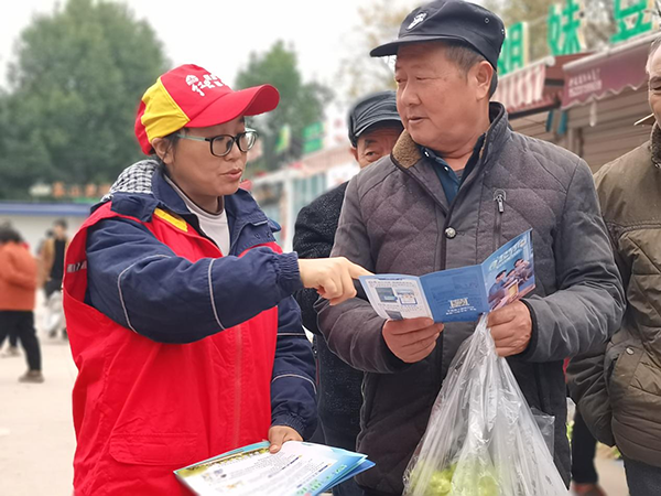 大路供电所员工在璧北农副产品土货市场向市民宣传安全用电知识。(朱会 摄)