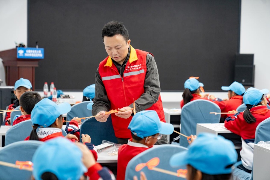 活动中,何涛带领学生们参观了多种类型的无人机,包括常用于电力巡检的多旋翼无人机、适用于测绘的固定翼无人机等,用简洁的语言讲解了不同无人机的结构特点与操作原理。陈思鸿协助孩子们进行飞机DIY模型制作,从零件组装到外观装饰,孩子们发挥想象力与动手能力,亲手完成了属于自己的飞机模型,在实践中感受科技的魅力。