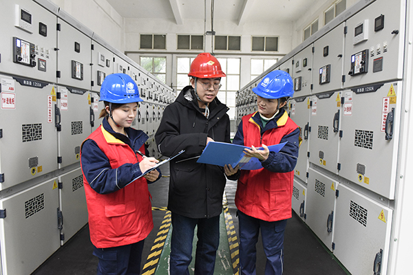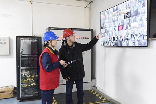 两江新区“水电气讯”红岩共产党员服务队在海尔工业园开展配电房检查。(钟雪 摄)