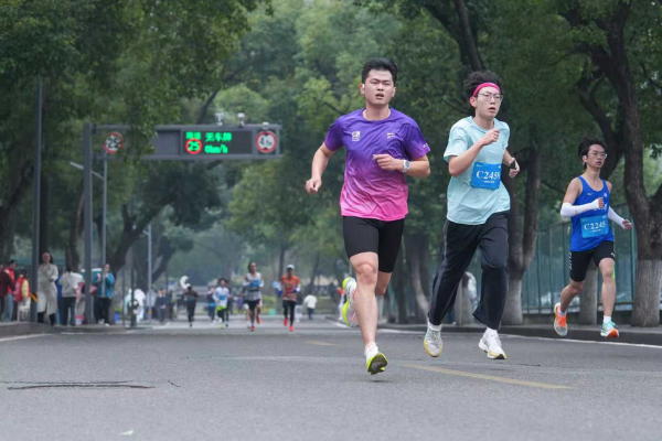 活动现场服务温馨细致。终点区域设有多个补给站,为选手提供运动营养食品、热姜汤、茶饮等。由食品科学学院、后勤集团等单位师生组成的服务团队,为参赛者提供了全面保障。签名墙、成绩查询处、合影打卡点等也聚集了不少师生,大家在奔跑后分享着运动的快乐。
