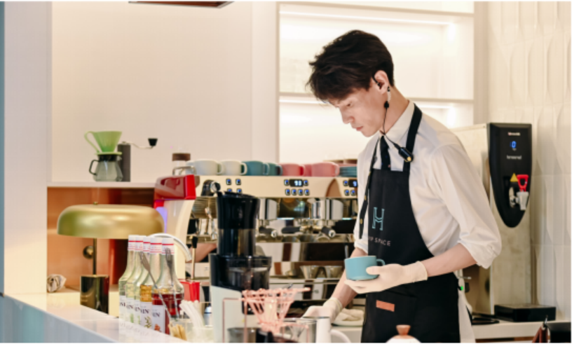 “外面是严谨专业的医疗区,这里是能放松聊天的‘第二空间’。”王涛这样定义咖啡餐吧的价值。“在重庆华美,这个集咖啡、餐食、社交于一体的空间,打破了传统医美机构的严肃氛围,让社交属性与休闲属性成为重庆华美专业医疗服务的有益补充。”