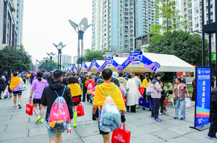 12月21日上午10点过,随着2025年重庆半程马拉松运动员们陆续跑过终点,“渝跑全球 优品同行”外贸优品中华行巴南巡展现场便迎来“人潮峰值”。18000名跑友参加了本赛事,冲过终点线的跑友们与众多市民一起涌入特色展区,一道开启“逛购模式”。