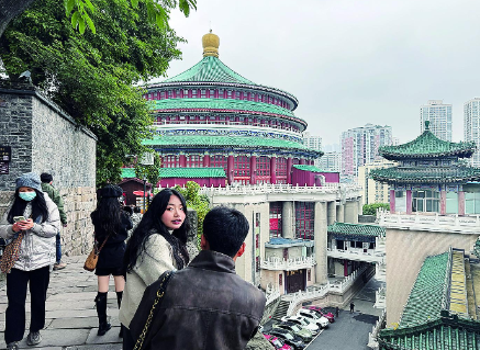 “哇!换一个角度看大礼堂的感觉真好。”昨天下午,重庆人民大礼堂传统风貌区马鞍山片区前来拍照打卡的游客络绎不绝。