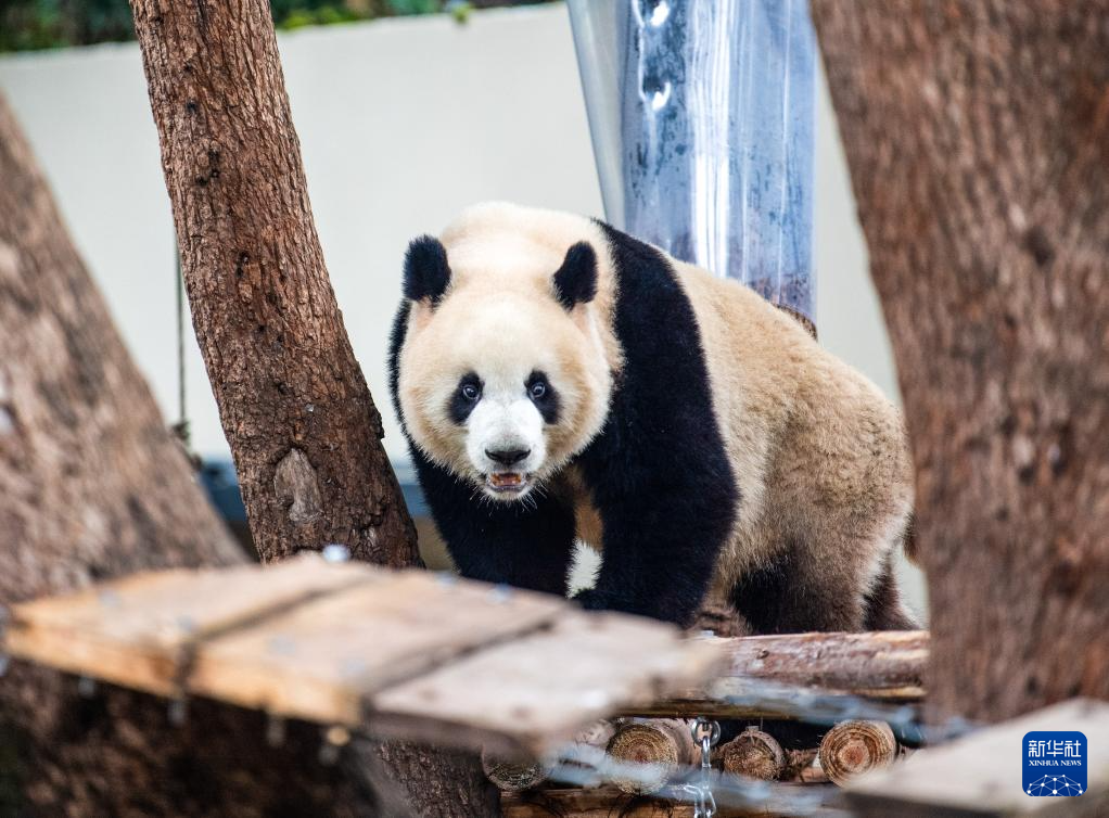12月22日,入住的大熊猫在适应新环境。新华社记者 唐奕 摄