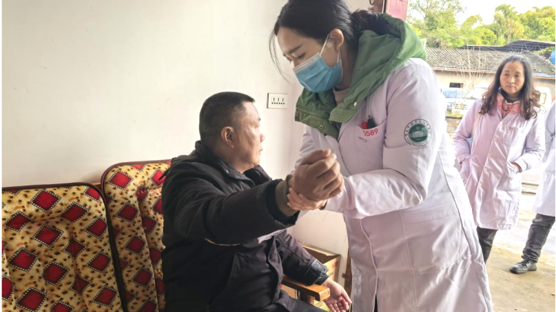 针对特殊患病群体的就医需求,团队康复科专家还深入宝花村村组开展入户随访,在脑卒中后遗症患者家中,专家细致评估患者恢复状况,仔细查看用药记录,现场指导家属掌握规范用药方法和科学康复训练技巧,将专业化、人性化的医疗服务送到群众“家门口”。