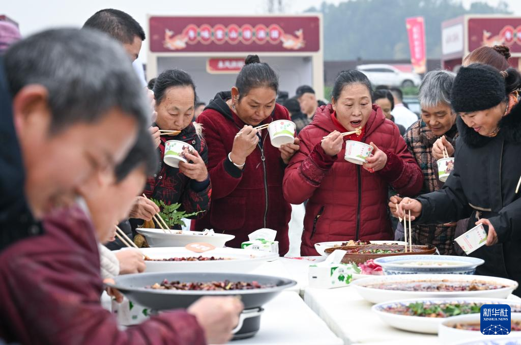 12月30日,当地市民在比赛现场品尝特色美食。新华社记者 陈诚 摄