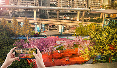 “给我三分钟,躺平看轻轨”繁忙拥挤处,稀缺的留白,躺下来换个角度看世界。打造以“轨道文旅”为脉络,以“趣味激活、公众参与”为内核的重庆特色街角空间体系。