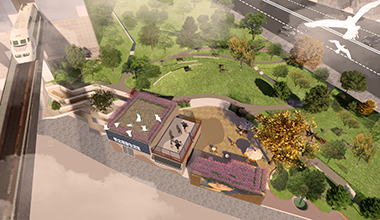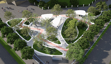 整体规划全部绿地范围,分步骤实施,重点打造此次红线区域,将历史意象转化为可感知的大地艺术与建筑形态。