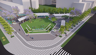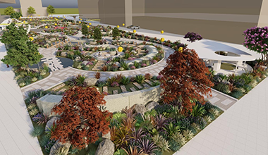 以“轻轨穿楼,8D城市空间”为核心IP,融合生态花海、通勤休憩、全龄活动功能,创造“休闲+打卡+景观”的复合型城市公共街角。