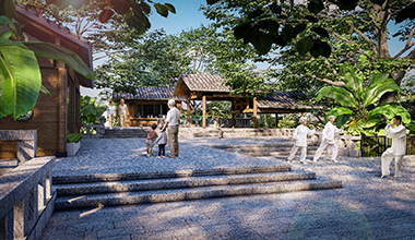 以 “乐团圆,庆颐年” 为核心理念,通过台地分阶策略划分多层级交往空间,塑造集文艺展示、健康康养、兴趣交流于一体的适老乐活功能板块。