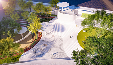 以玉马路起点的“启新”意象为核心,为通勤者和周边居民打造一处从“道路起点”延伸至“生活新体验起点”的社区客厅。
