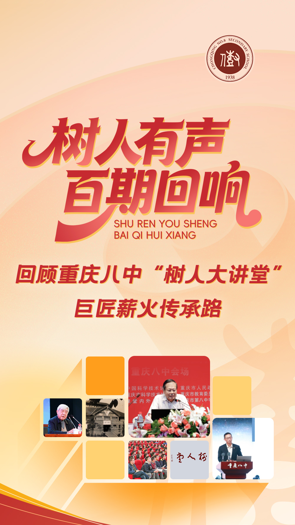 回溯源流,重庆八中从教育救国,为贫苦青年谋幸福、谋出路、谋救济、谋读书之机会;到今日“为党育人,为国育才”,锤炼学生全人发展,“树人大讲堂”在重庆八中的教育沃土中应时而生,筚路蓝缕,更新迭代,秉“诚勤立达”校训根本不移,怀“乐育天下”树人初心不变。