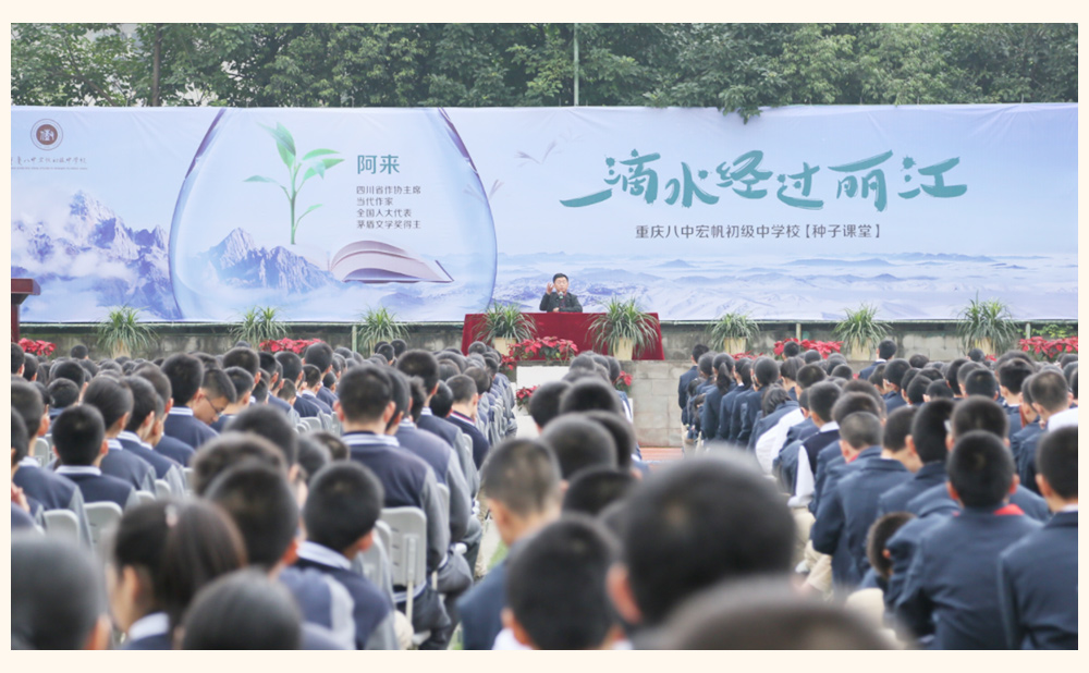 类似情况不胜枚举:当杨振宁院士2009年作客重庆八中,分享《我的求学和人生经历》,亲切对话八中学子,并写下“宁拙毋巧”题词,让薪火传承的抽象概念有了具象的载体;当施一公院士将《生命科学之美》带入校园,揭示生命运行底层逻辑及展示出生命科学与人工智能深度交织的前沿图景,点燃学子们的“创新火种”;当文学大家刘墉、阿来等走进校园分享文学中的生命感悟,文字浸润人文的温度,助力学生以写作唤醒与世界的联系……这一闭环机制,成功打破传统课堂壁垒,在教育生态中催生持续的创新涟漪。