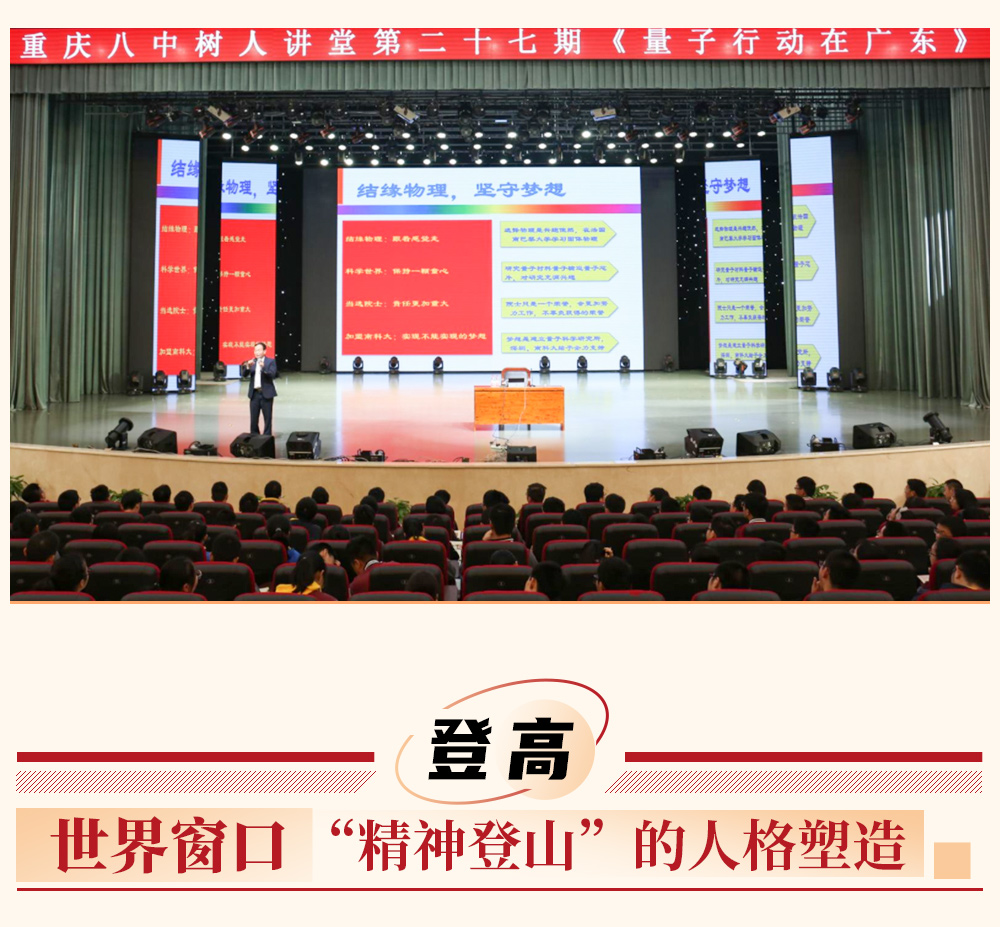 科学家分享失败后的坚持,文学家诉说文字背后的温情,艺术家诠释美与创造的无限……这一切,如同一堂堂生动的“精神登山课”,在潜移默化中,将巨匠们的人格魅力与价值追求,沉淀为八中学子心目中珍贵的教育资源,激励着他们去完成属于自己的人生“登高”。