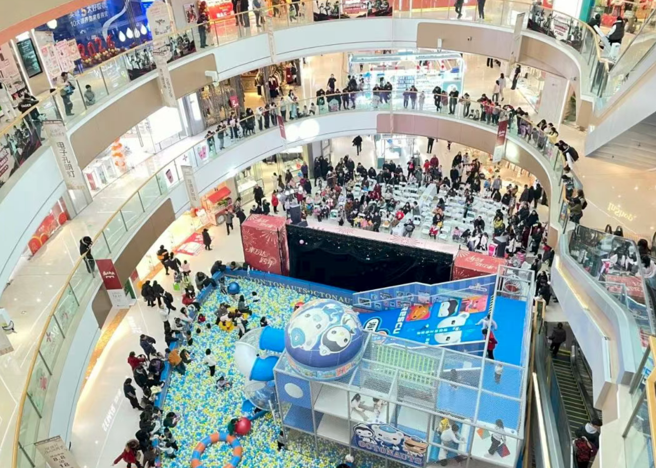市民在綦江万达广场购物、玩耍。(陈祺 摄)