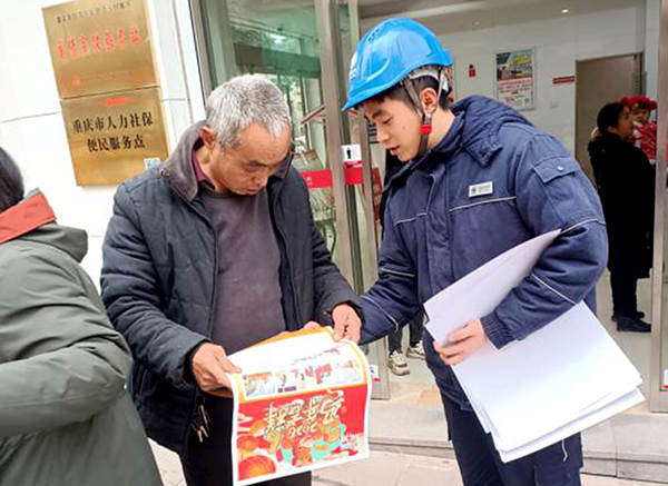 1月12日,在大足区珠溪镇人力社保便民服务点开展安全用电知识宣传,推广电力便民服务方式。
