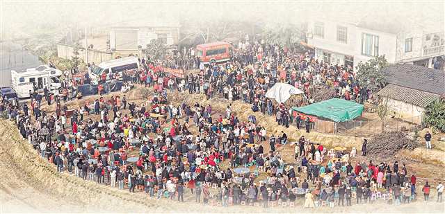11日下午,“呆呆”家门口已经汇聚了六七百人,“下午摆了30多桌,非常热闹,晚上还有人表演打铁花。”来凑热闹的张先生说,热气腾腾的刨猪汤端上桌,大家围坐分享,美食与故事交融,浓厚的人情味与烟火气在冬日的乡村弥漫。