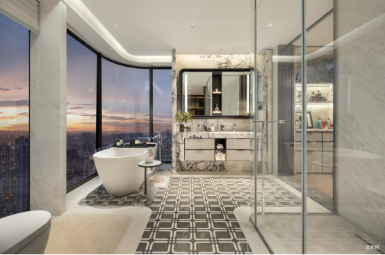 此外,500万级建面205㎡户型打造约70㎡的一体化厅堂与约30㎡的空中花园,营造出“空中独院”的私密感,另拥有270°环幕视野主卧套房。