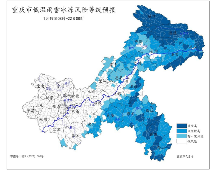 开州、云阳、奉节、城口、巫溪、巫山、彭水、石柱、黔江、酉阳、秀山等地为低温雨雪冰冻灾害风险高风险区。