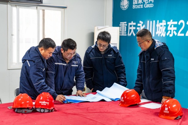电力工作人员正在进行方案研讨。