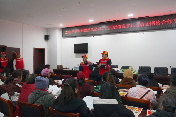 随着春节临近,外出务工人员陆续返乡。1月20日,国网铜梁供电公司供电服务中心网格服务班员工走进巴川街道袁家社区,向居民宣传安全用电知识,筑牢冬季用电“安全网”。