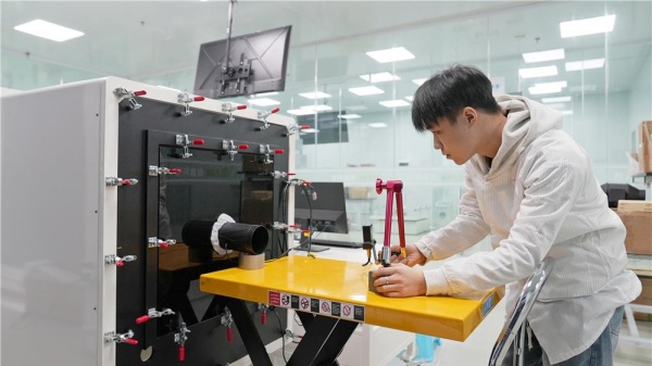 近日,重庆信鑫科技有限公司,技术员利用风洞测试设备对产品进行检测。