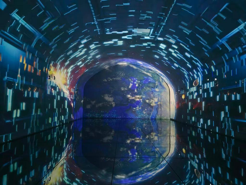 “基地收到通知,终极太阳风暴提前登陆……”洞里传来了AI急促的警告声,游客们挤进“地心电梯”,轿厢剧烈震动,红灯闪烁。“坠毁概率超过40%,请人工启动!”在孩子们的惊呼声中,游客合力按下启动键,经历了一场惊心动魄的“地心历险”。