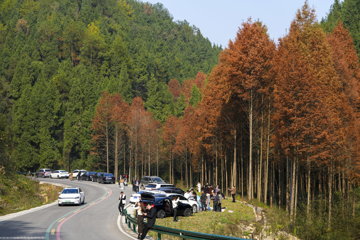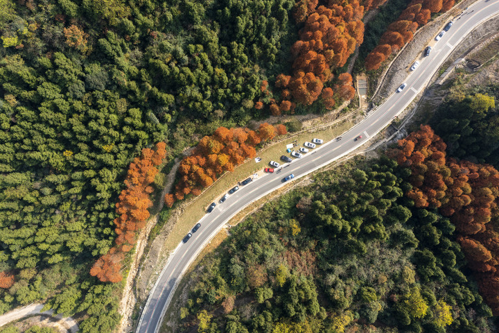 2023年11月28日,重庆垫江县明月山天香路迷人的彩林景色。新华社记者 刘潺 摄