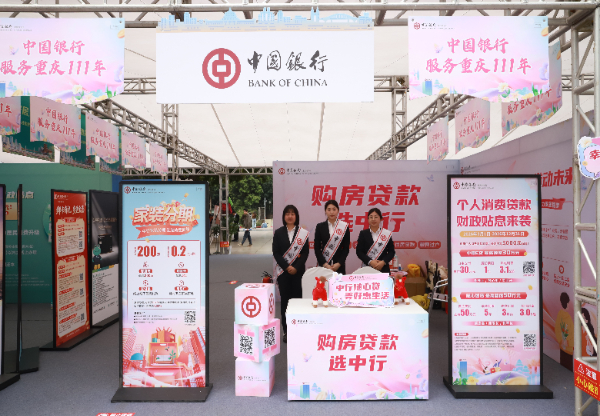 3月12日至15日,重庆市春季房地产暨家居展示交易会在观音桥步行街举行。展会期间,中国银行重庆市分行派出专业团队入驻现场,搭建集政策咨询、贷款预审、合同签约于一体的“一站式”金融服务专区,为市民购房置业提供高效便捷的金融支持,也为房地产市场平稳健康发展注入金融动能。