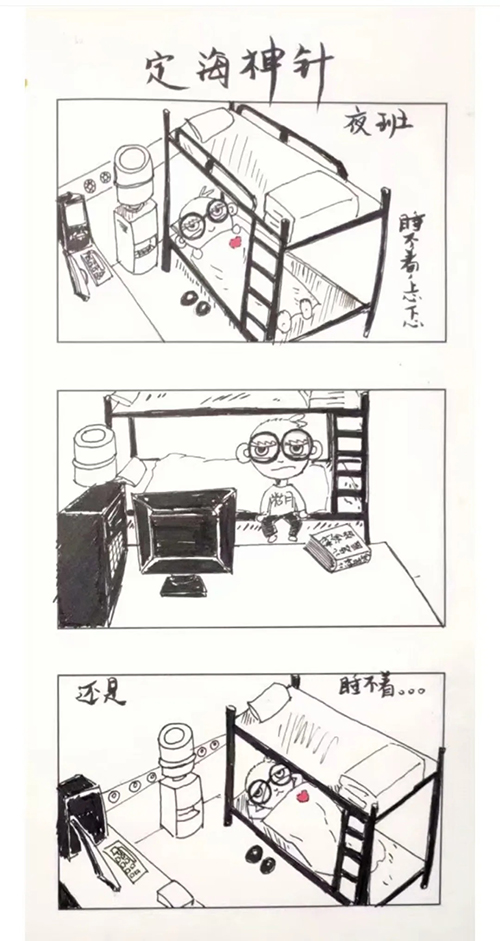 刚参加工作时,他在新生儿科遭遇了一连串“倒霉事”:换衣服时不小心被锁在更衣室,好不容易出来,又误打误撞被锁在值班室;忙了大半天想找个板凳歇口气,还一不小心把板凳坐坏了。哭笑不得的他,随手把这段糗事画下来发了朋友圈。画风稚嫩,线条生硬,初创作品甚至有些“丑”。他本以为会被笑话,没想到评论区里全是鼓励,没有一句否定。